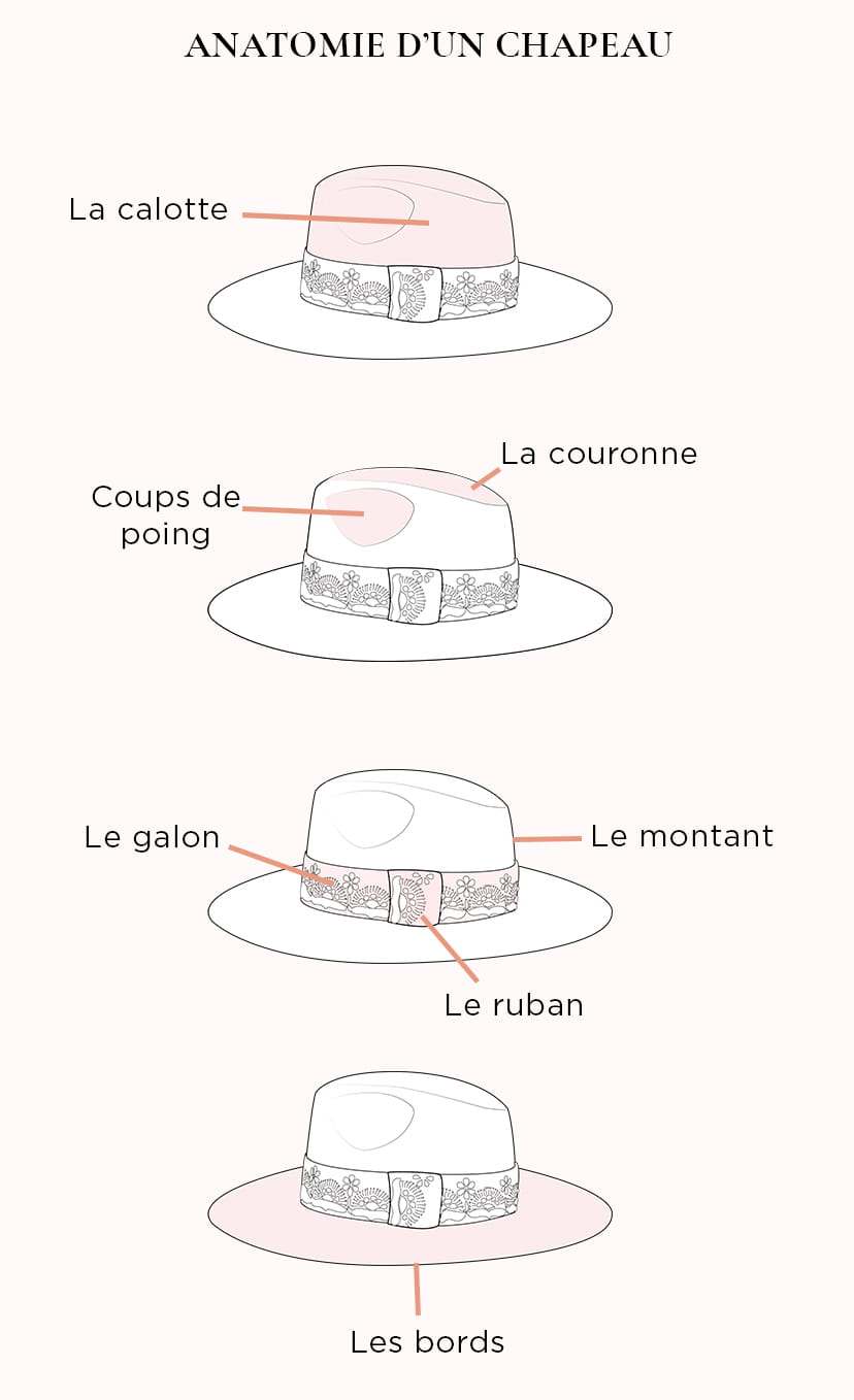 C’est non seulement les bords, mais aussi la matière et le travail sur la calotte qui détermine le type de chapeau. Le fedora a une calotte creuse, pincée sur les côtés… tout comme le panama, mais qui lui, est fait en paille ! De la même manière, le canotier est un chapeau de paille, mais sa couronne, elle, est plate !