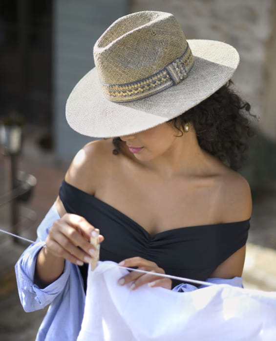 La paille étant naturelle, elle peut avoir des légères variations de couleur. Il est conseillé de ne pas plier votre chapeau pour maintenir sa forme initiale.