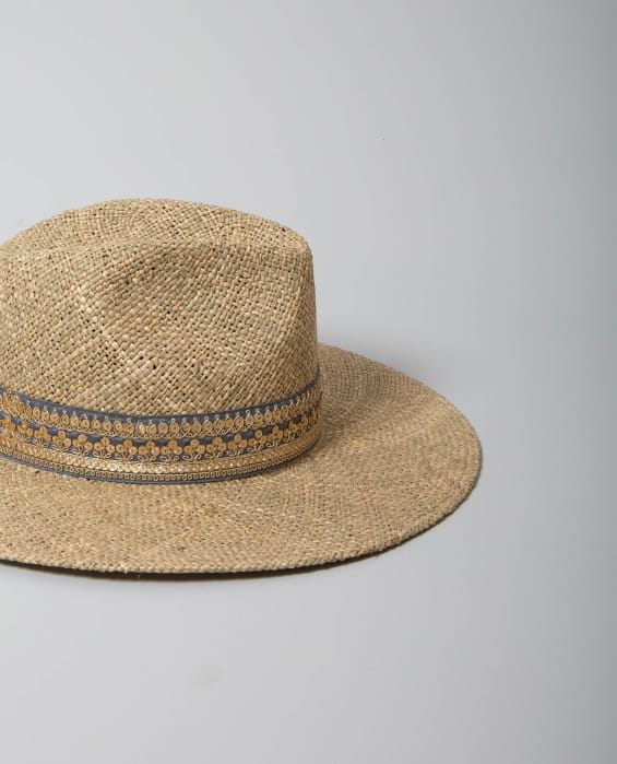 Originaire du Mexique, il permet de couvrir tête et épaules grâce à ses bords larges et quand nous savons que “Sombra” signifie “ombre”. Le nom de ce chapeau de paille prend alors tout son sens. Symbole du Mexique, il s’invite dans votre vestiaire français et apporte avec lui une touche d’Inde. Le galon est brodé au pays du Taj Mahal dans nos ateliers respectant les artisans qui créent ces rubans.